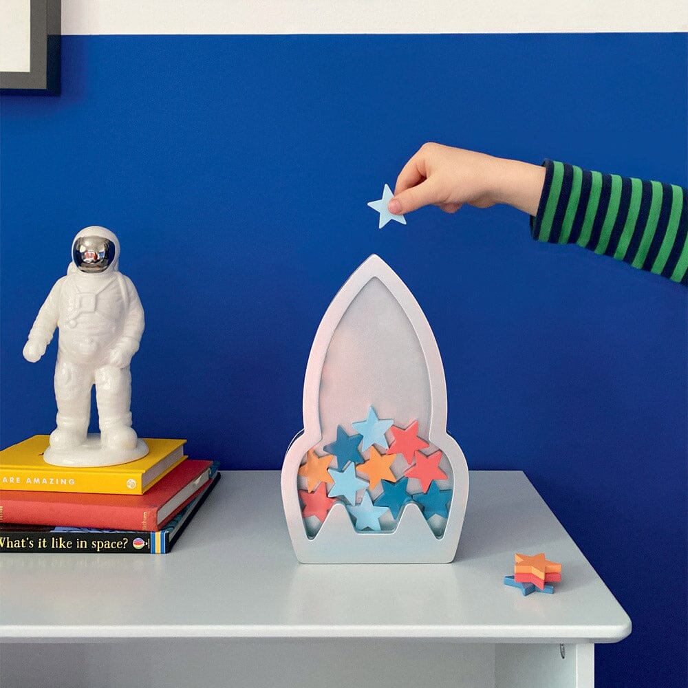 This supersonic reward chart will have children completing chores and doing good deeds in no time. A fun twist on the traditional reward chart; hand your child a colourful star to pop into the rocket every time they’ve been good. When full, it’s treat time! Looking for more space-themed children’s bedroom inspiration? Take a look at our matching Space Explorer Rug.